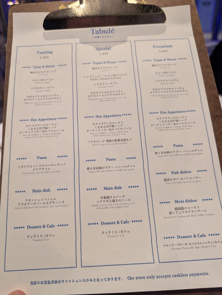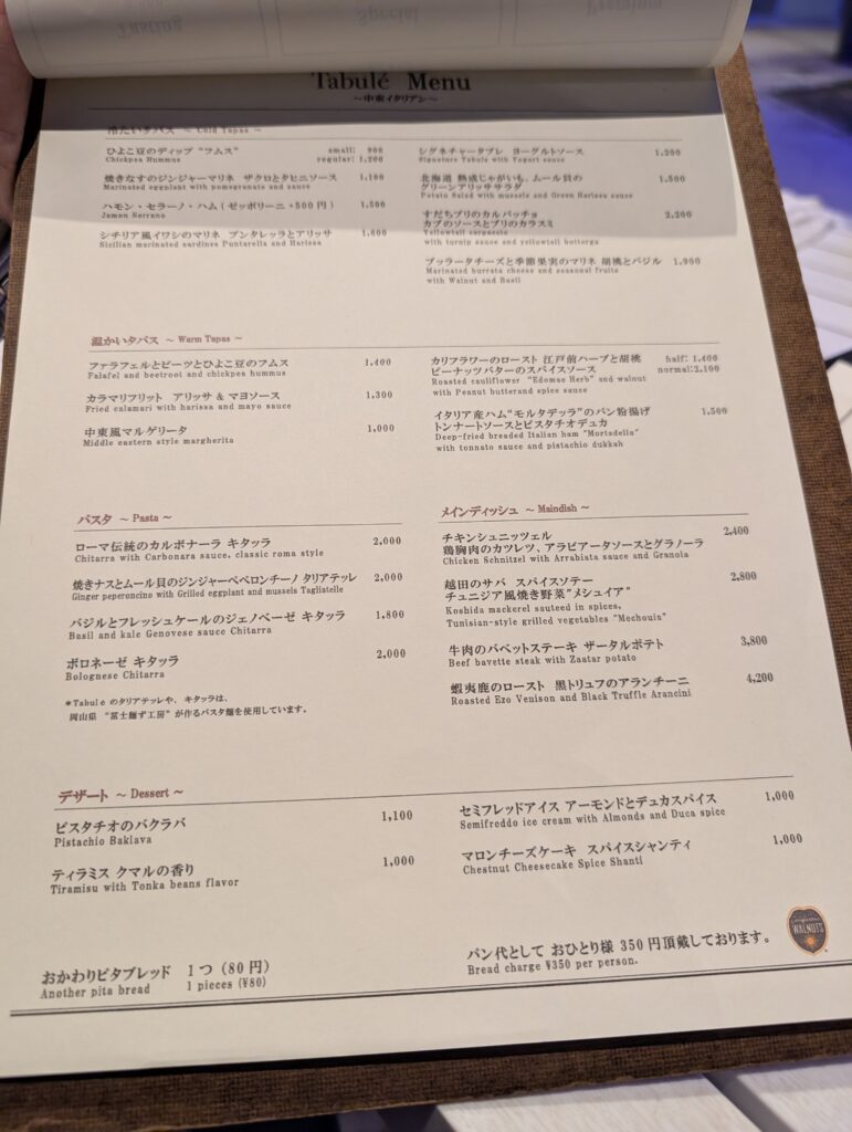 このお店の名前にもなっているタブレやメインの料理を本日注文しなかったので次回来店時には注文しようと思う。