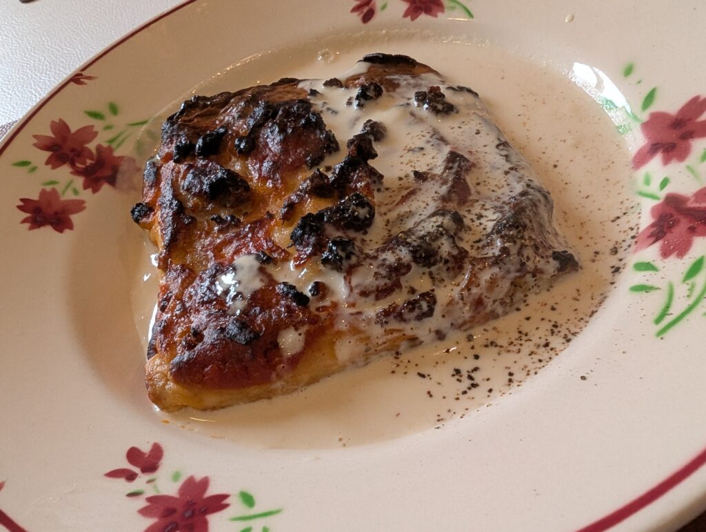 見た目は少し焼き過ぎくらいの表面の焦げとクリームソースの軽くてまろやかな味わいが丁度いい。
