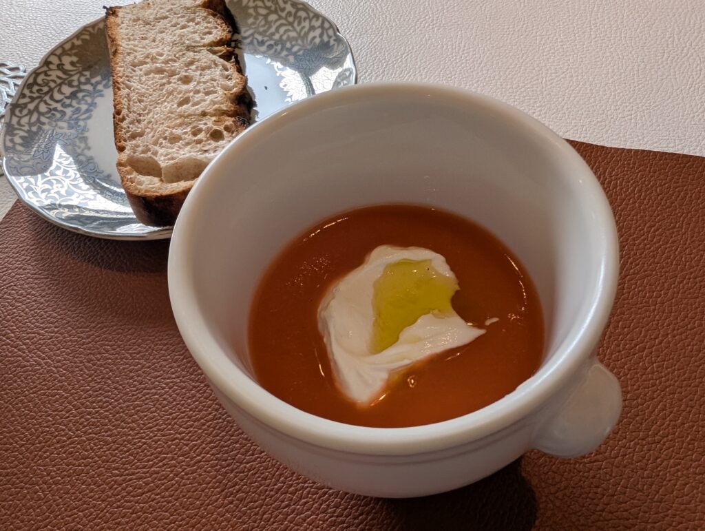 人参のスープの上に浮かべられたのはリコッタ。